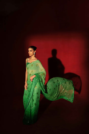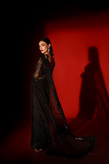 Description: Introducing ‘Anatase’ - A masterpiece of elegance and refinement. This exquisite black saree is the...