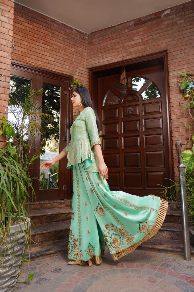 Fabric: Peplum Jamawar & Sharara pants silk tissue.