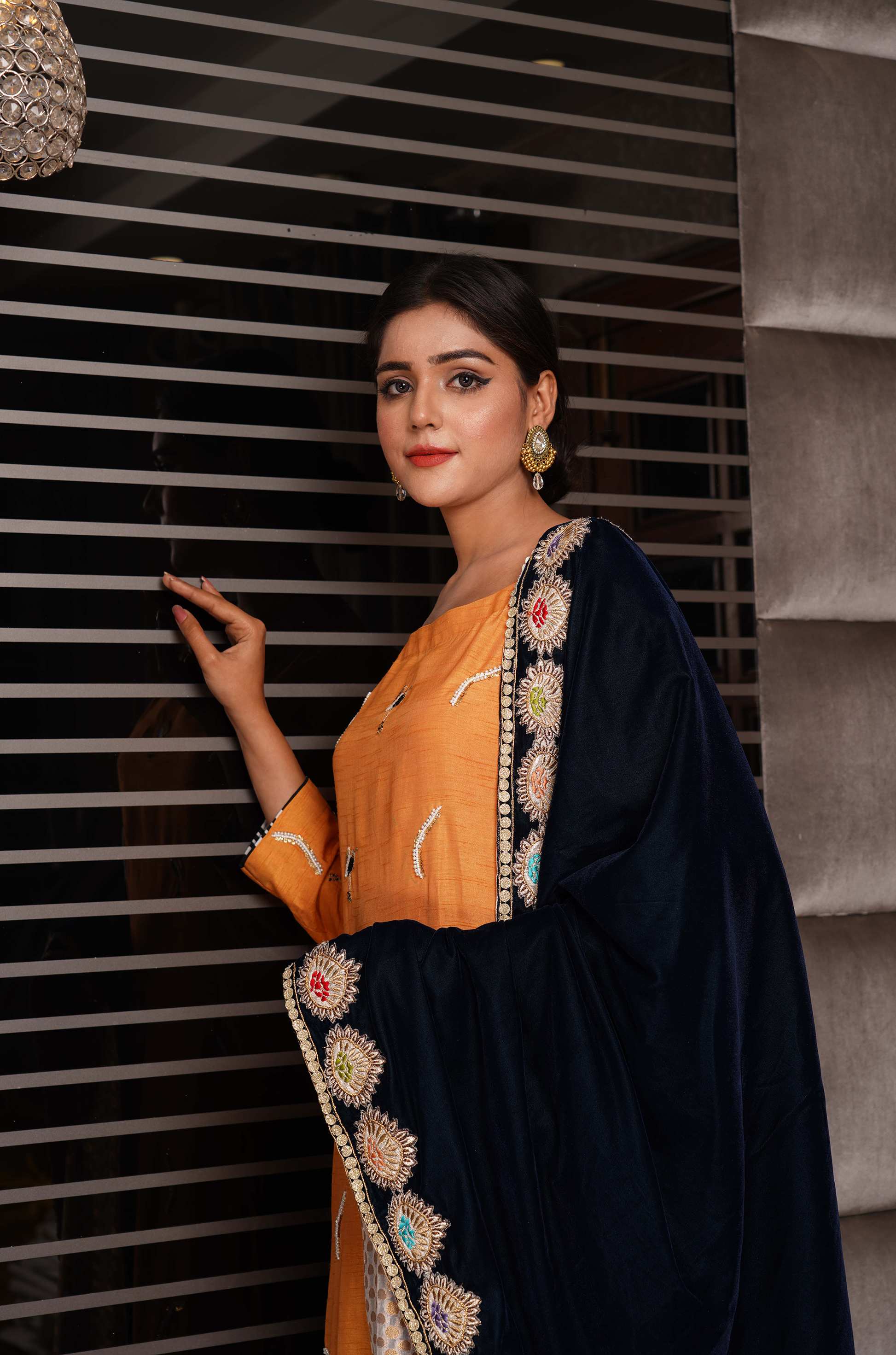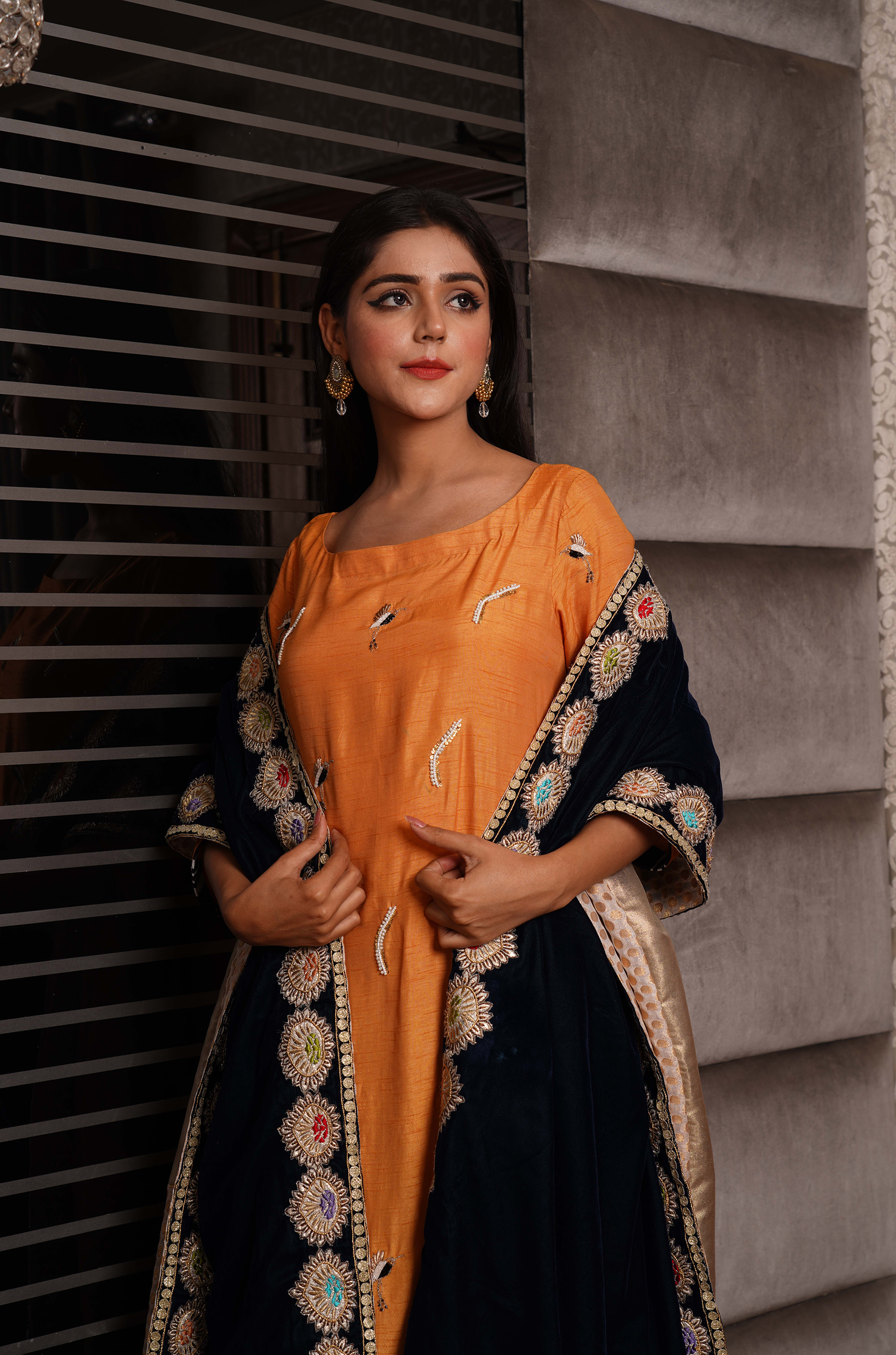Elegance is the way to go with this green velvet shawl adorned with Tila and Resham embroidery and stitched finish on the borders.
