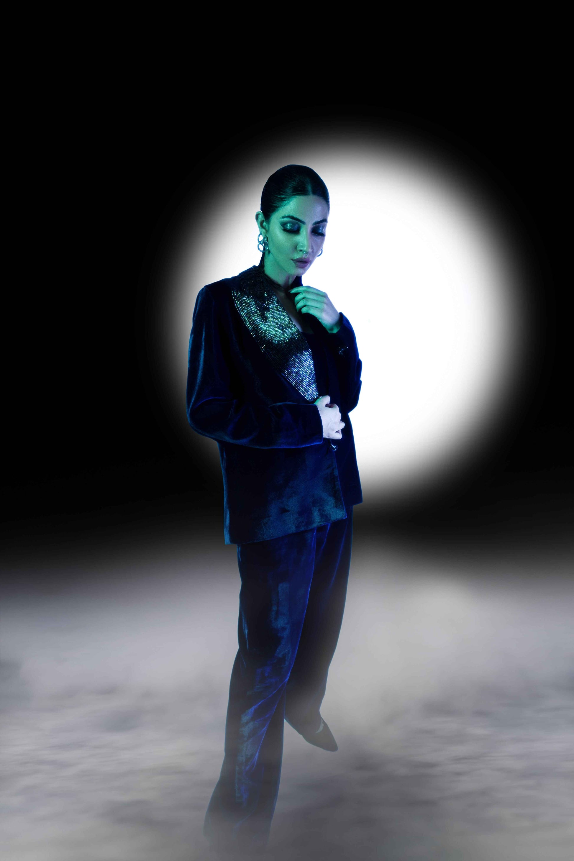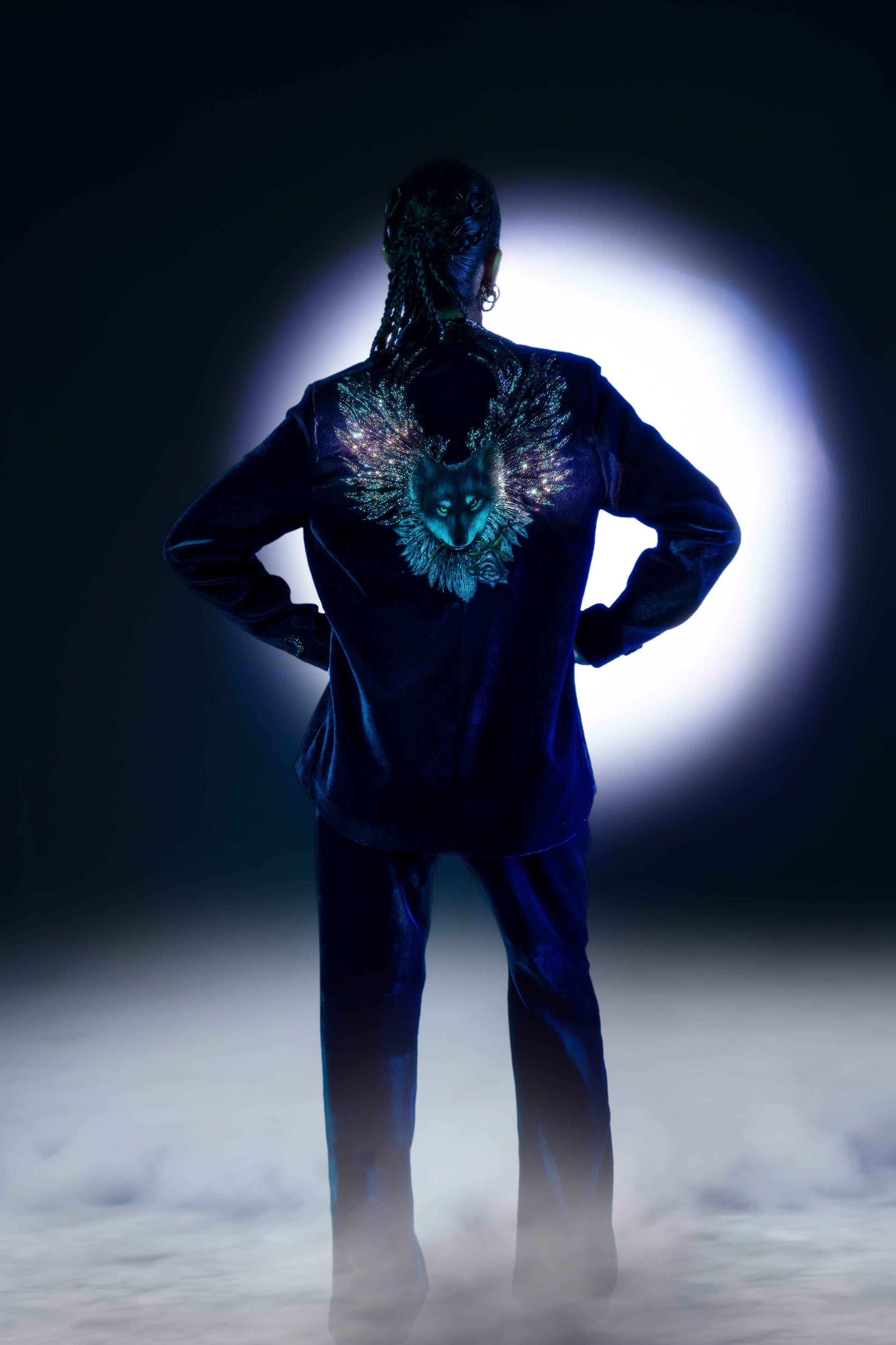 Description: Embracing the Elegance of Platonic Love: Every stitch is a fusion of style and sentiments, Mehreen Mirza brings a jacket that captures the Wolf's Devotion to Her Moon